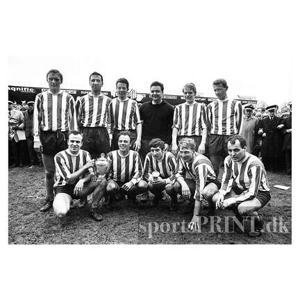 KØBENHAVN, DANMARK - 15. maj, 1969: Landspokalfinale KB vs Boldklubben Frem, Idrætsparken, København - KB vindere af pokalfinalen 1969 stiller op til holdfoto - Nils Jensen, Tommy Jørgensen, Flemming Pedersen, Jørgen Ravn, Henning Helbrandt, Niels Møller, Kurt Præst, Ole Sørensen, Niels-Christian Holmstrøm, Karl Aage Skouborg, Bengt Christensen. (Photo by Casper Thorsøe / SportsPRINT )