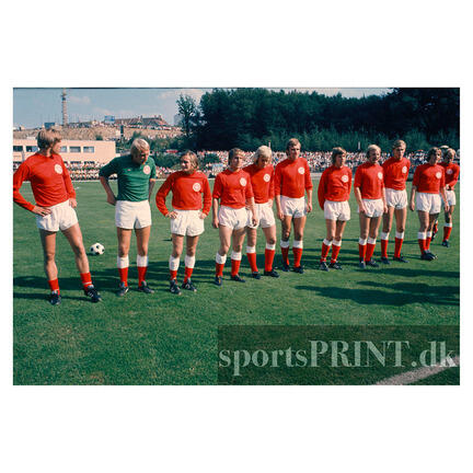 Danske landshold, line-up - Mogens Therkildsen, Flemming Ahlberg, Svend Jørgen Andresen, Per Røntved, Jørgen Rasmussen, Hans Ewald Hansen, Jack Hansen, Heino Hansen, Kristen Nygaard, Allan Simonsen
