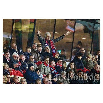 SILKEBORG, DANMARK - 17. OKTOBER, 2025: Musiker og sanger Lars Lilholt jubler under Superligakampen mellem Silkeborg IF og FC København. (Photo by Lars Rønbøg / FrontZoneSport)